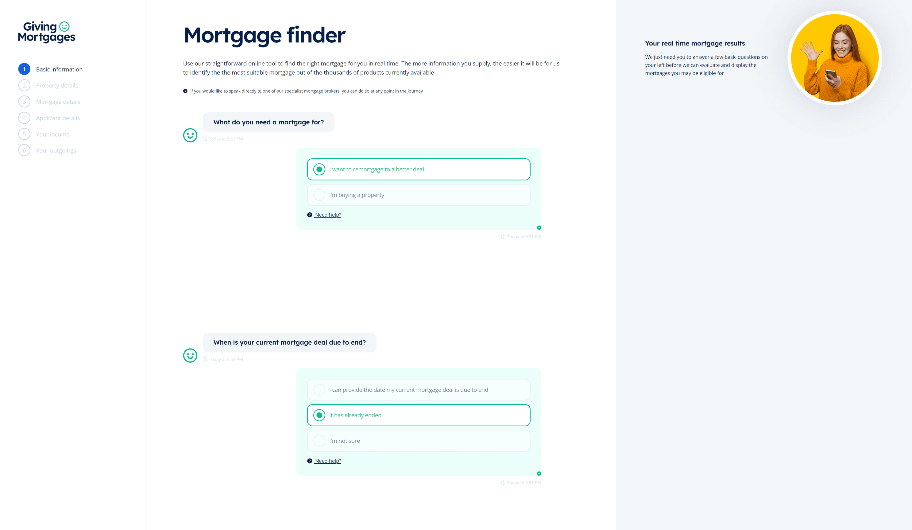 Our Mortgage Finder asks a series of calculated questions that help us to shortlist the most suitable mortgage for you. We've made this process as simple as possible through easy, bite-sized questions
